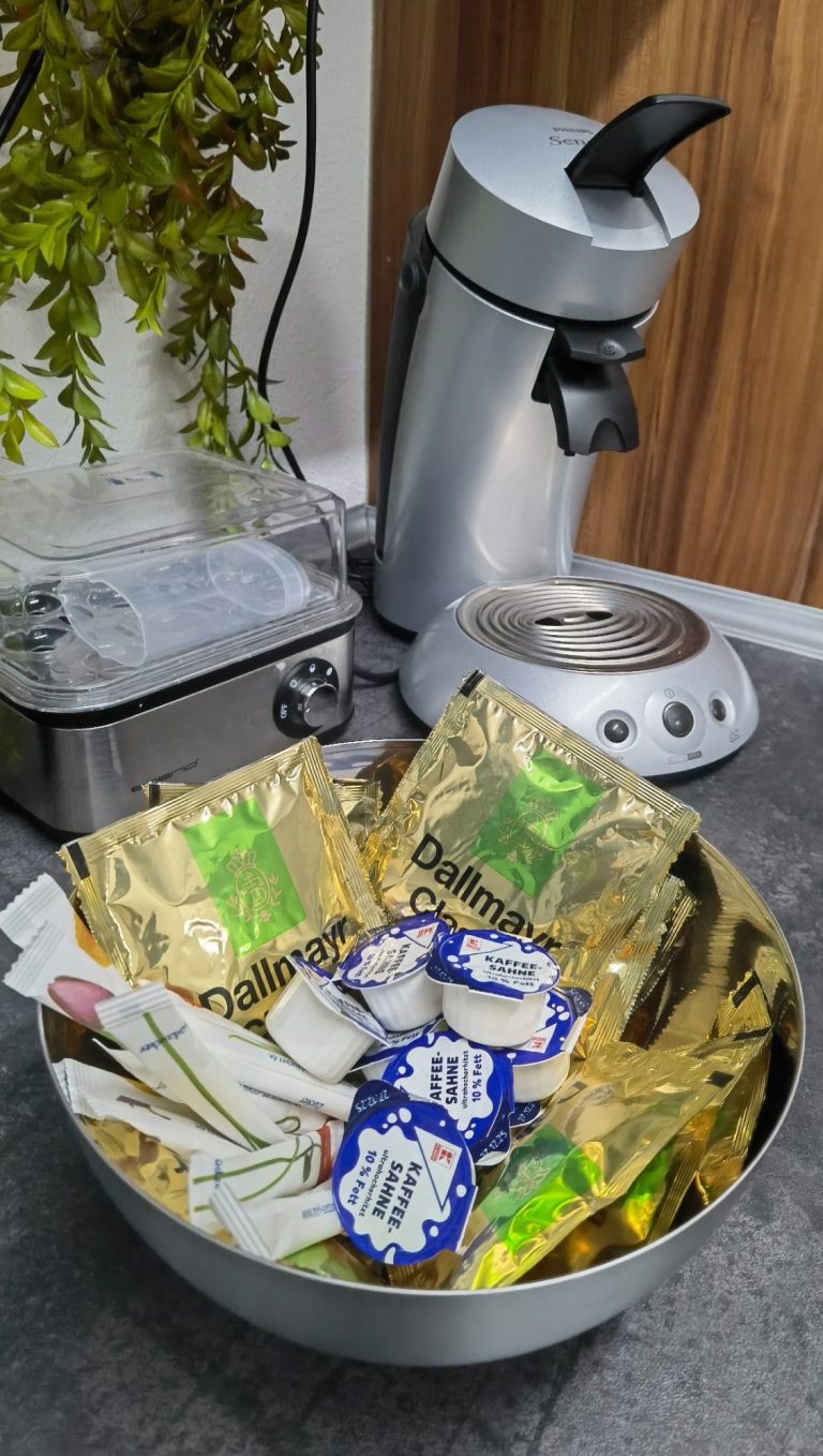 Für den schnellen Kaffee steht für Sie eine Senseo-Padmaschine bereit.Ansonsten kochen Sie Ihren Kaffe gerne mit unserer Filtermaschine!